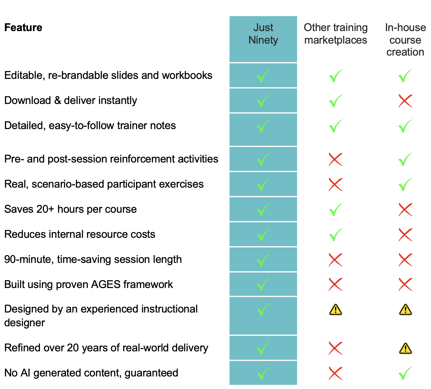 Here’s how Just Ninety stacks up against the competition.